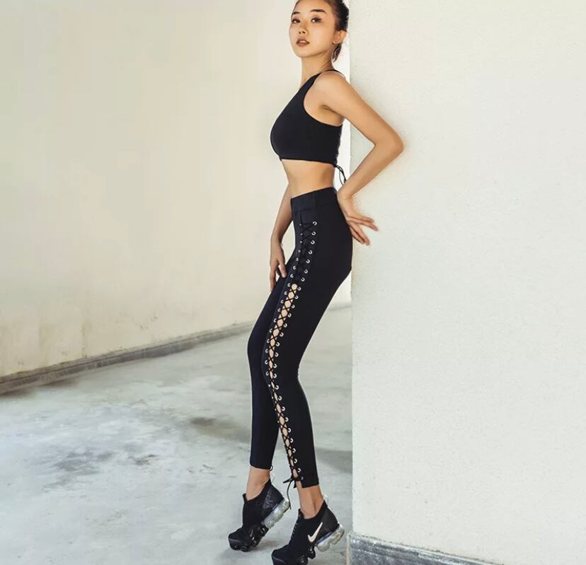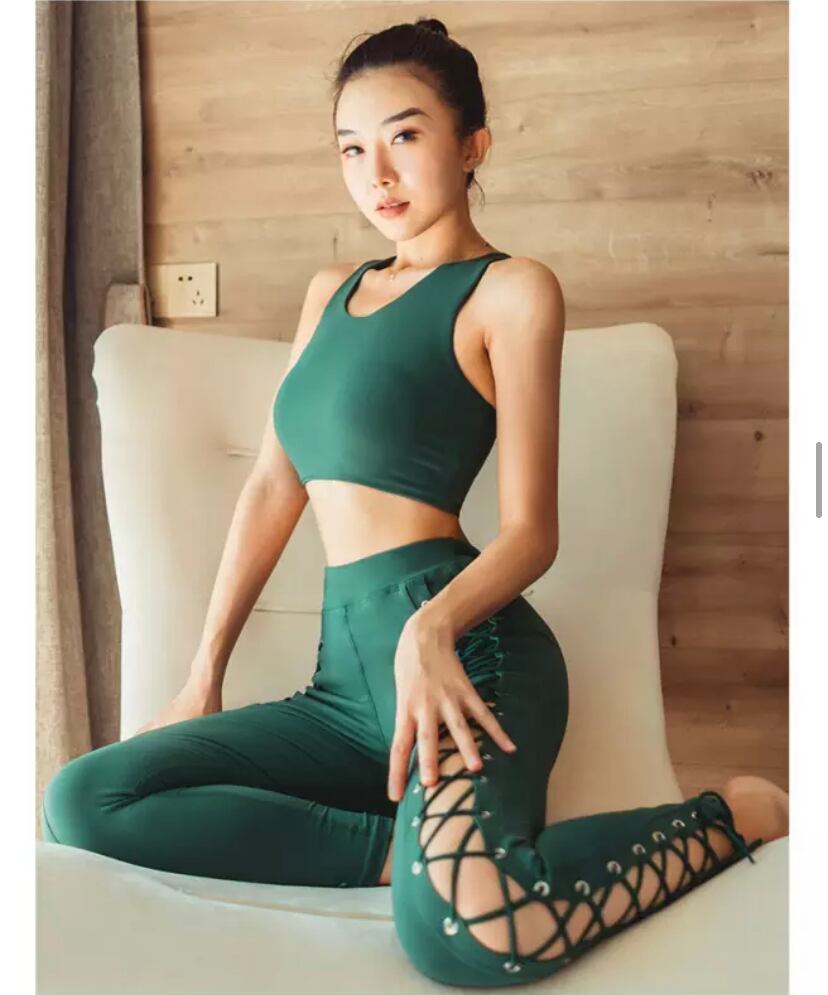即納♡スタイルアップ編み上げセットアップ グリーン