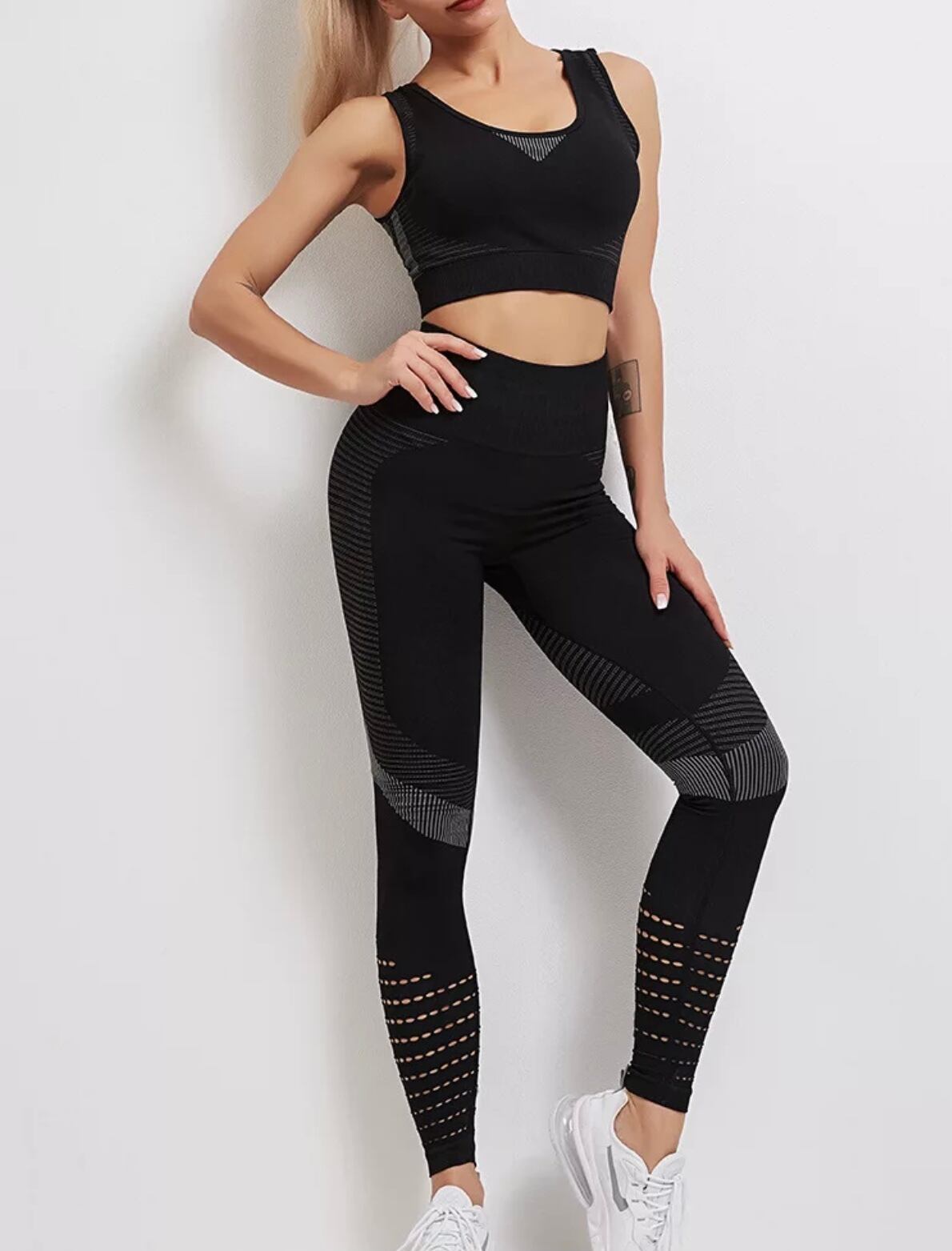 大人気 シームレスヨガウェアセットアップ ブラック