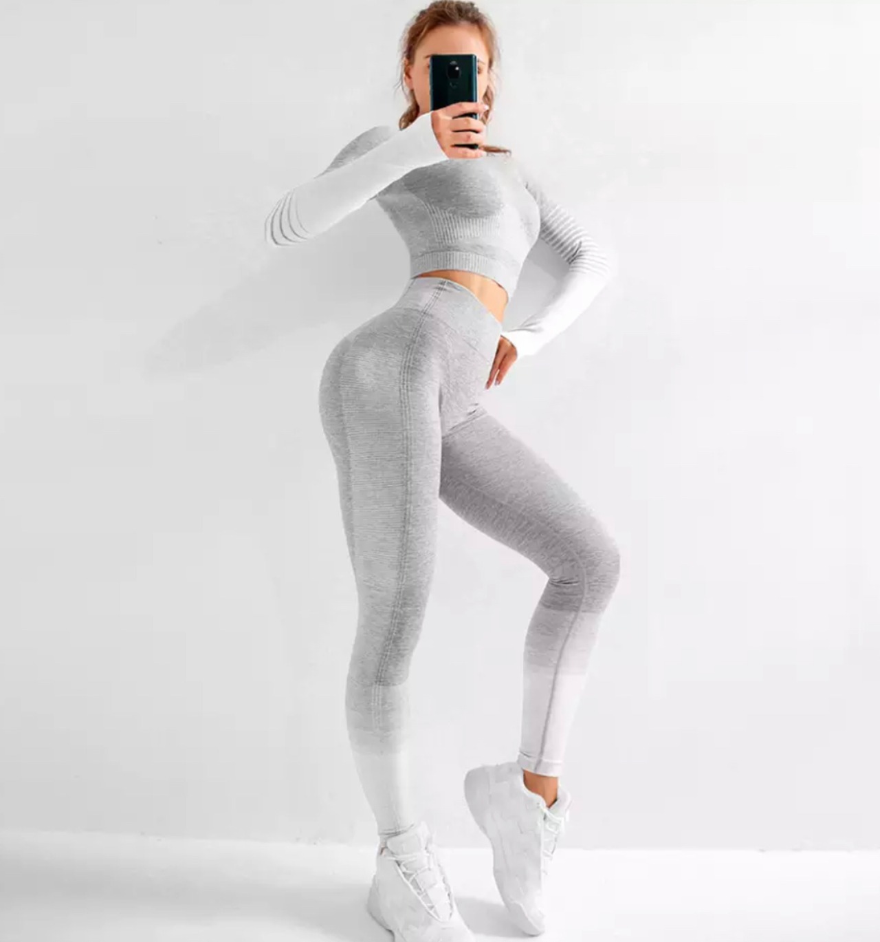 即納♡ホワイトロングカラーシームレスハイウエストセットアップ