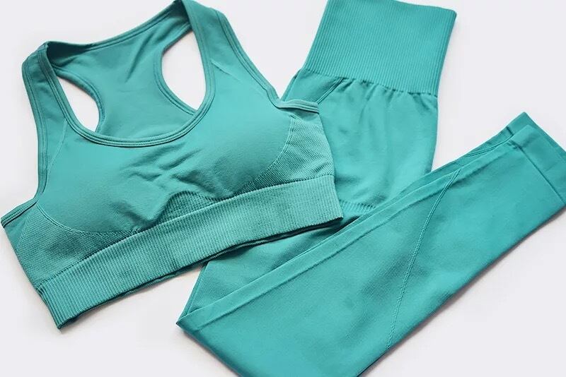 即納 シームレススリムセットアップ ピーコックグリーン